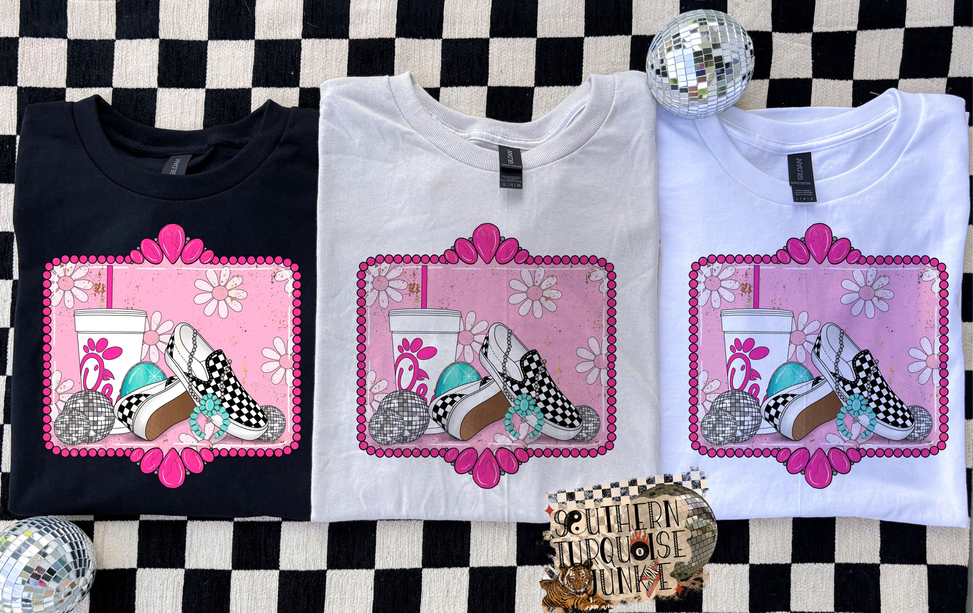 ⨠Selecting Pick Your Color automatically changes your tee to a DTF-style print.