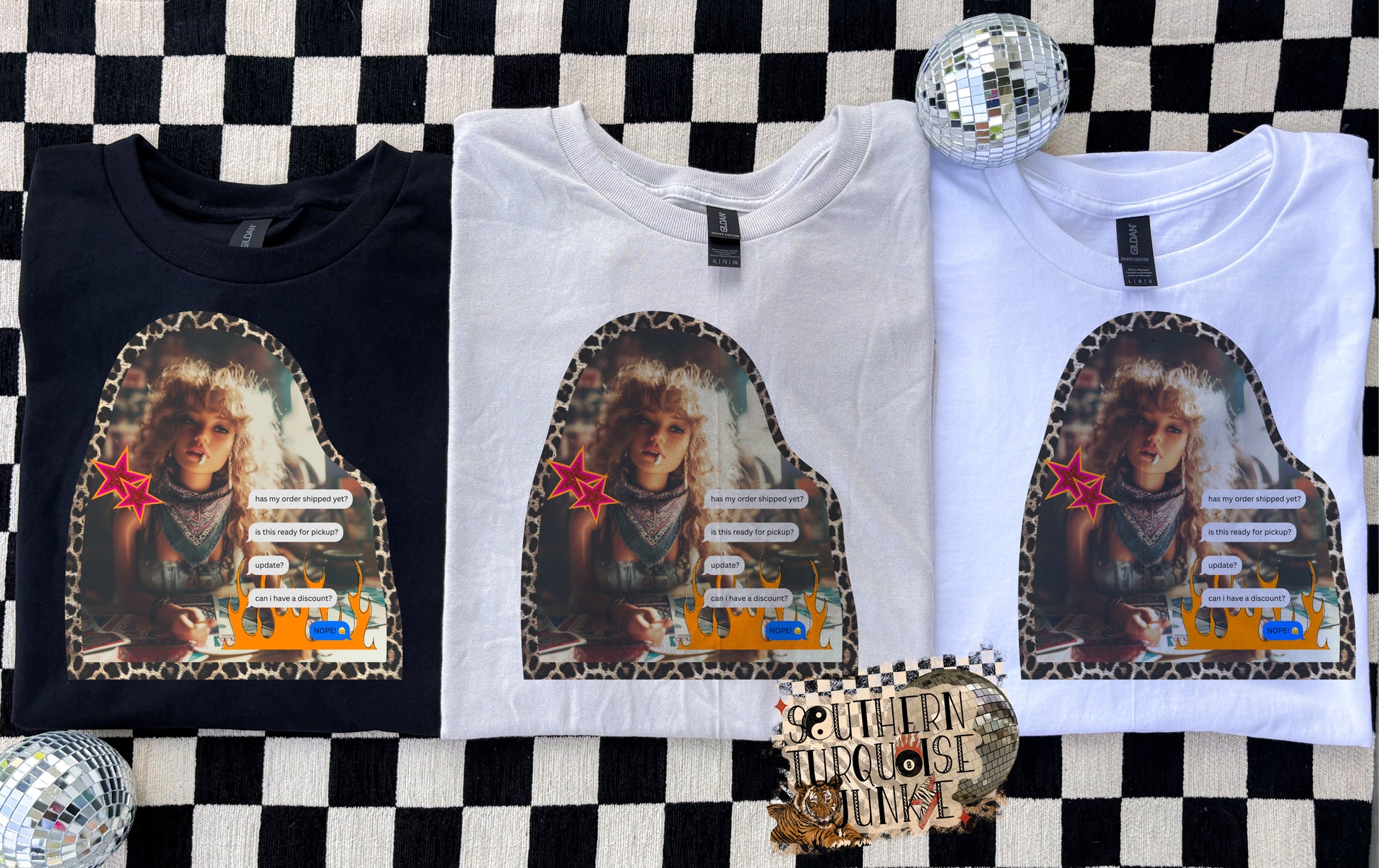 ⨠Selecting Pick Your Color automatically changes your tee to a DTF-style print.